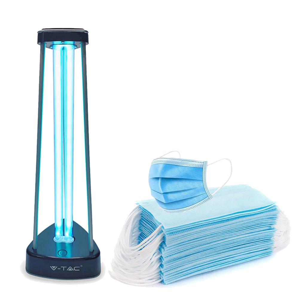 Основни характеристики: Бактерицидна антивирусна лампа V-TAC 11203 + подарък, UV + Озон, 38W, 60 кв.м, Таймер, Черен - Код G8416