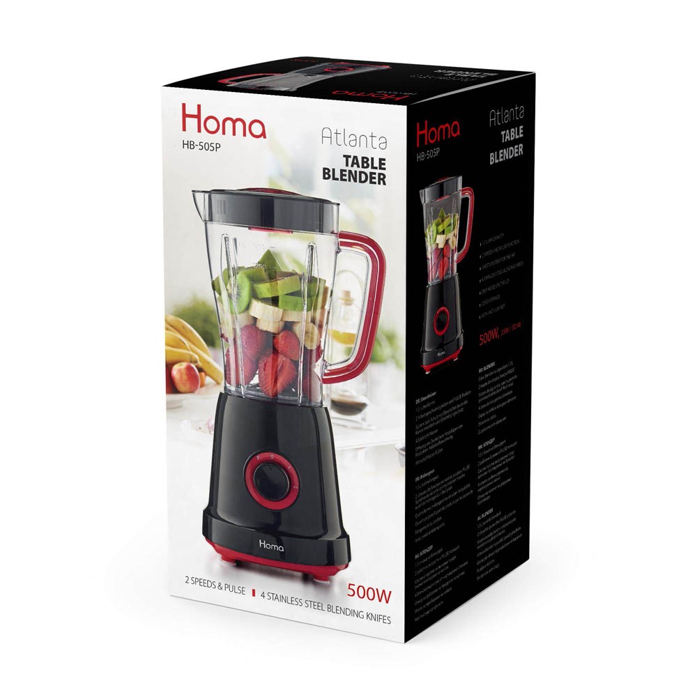 Основни характеристики: Блендер HOMA HB-505P, Atlanta, 500W, 1.5 L, 2 скорости, Черен/Червен - Код G8687