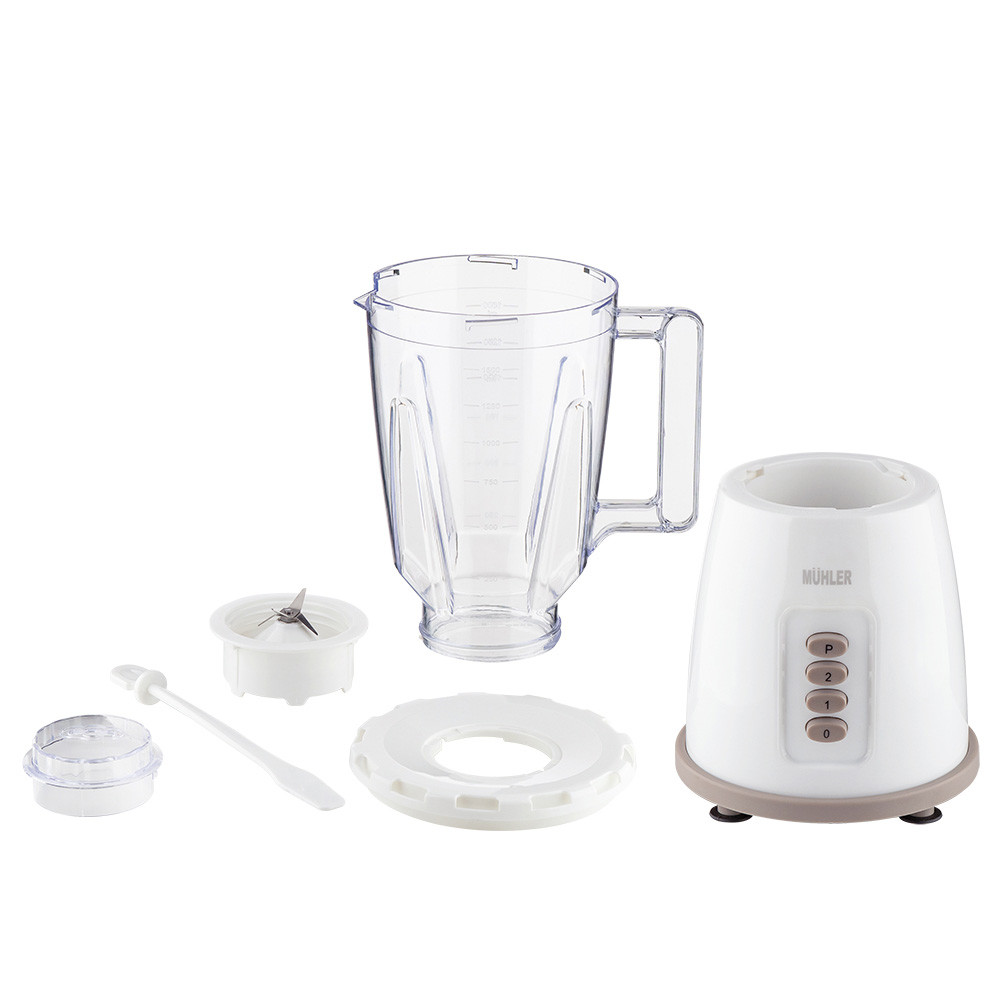 Основни характеристики: Блендер Muhler MB-155, 500W, 1.5 л, Пластмасова кана, Бял/Сив - Код G8826