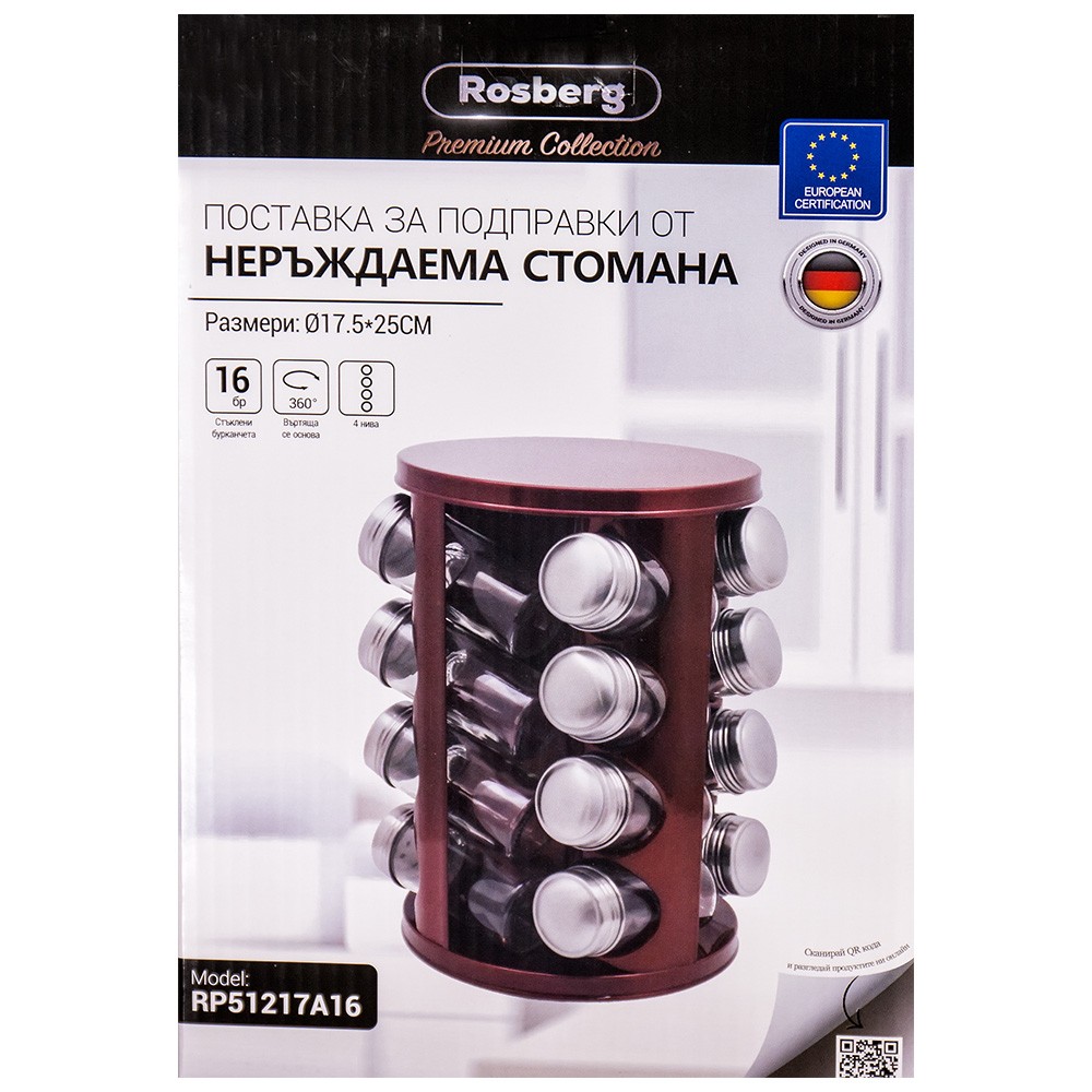 Основни характеристики: Бурканчета за подправки на стойка Rosberg Premium RP51217A16, 16 бр, 4 нива, Червен металик - Код G8669