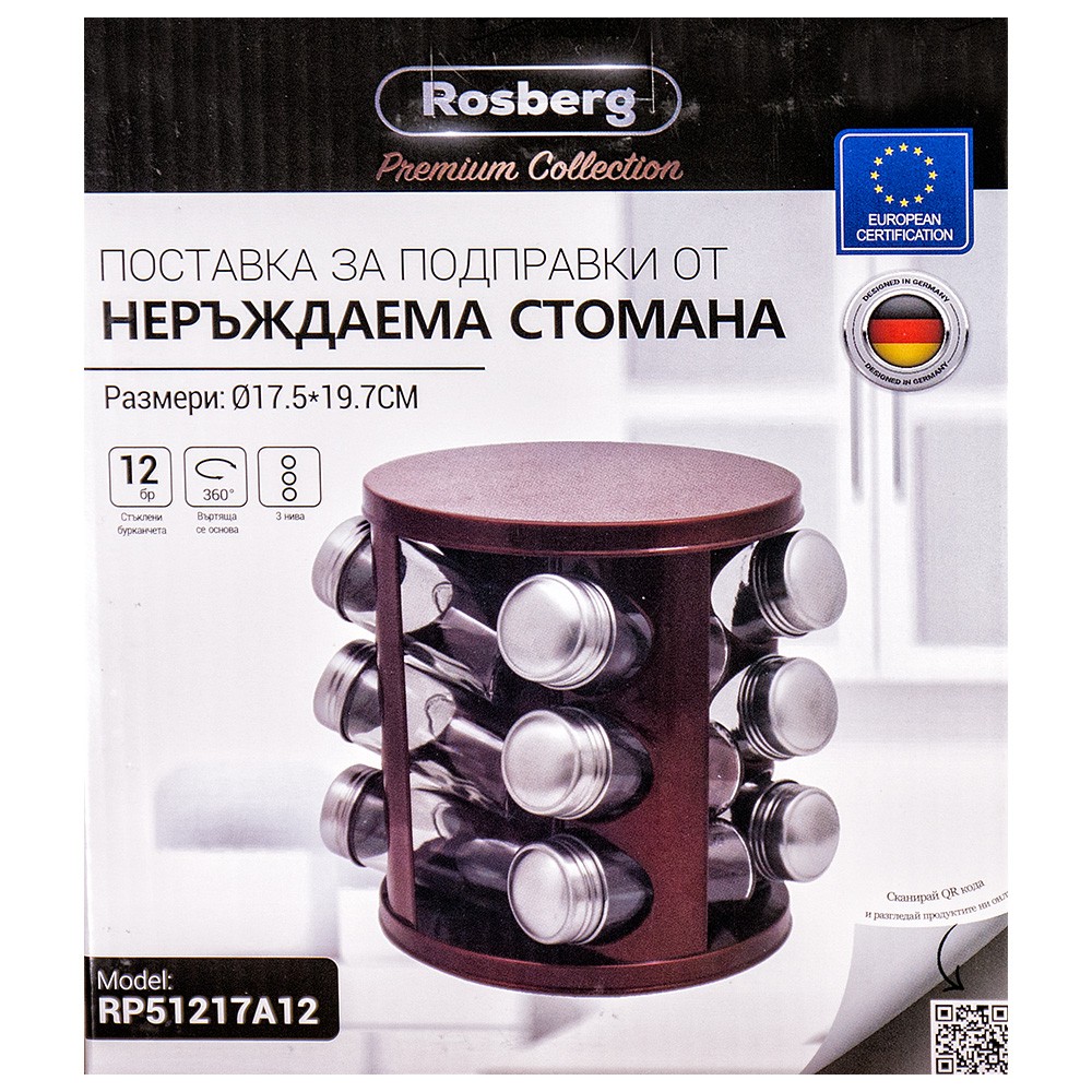 Основни характеристики: Бурканчета за подправки на стойка Rosberg Premium RP51217A12, 12бр. бурканчета, Метална поставка, Червен металик - Код G8672