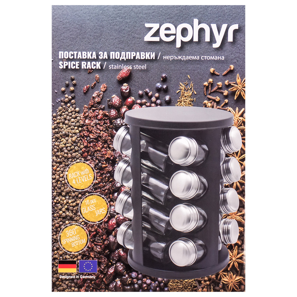 Основни характеристики: Бурканчета за подправки на стойка ZEPHYR ZP 1217 CR16, 16 бр. бурканчета, 4 нива, Въртяща се основа, Черен - Код G8461