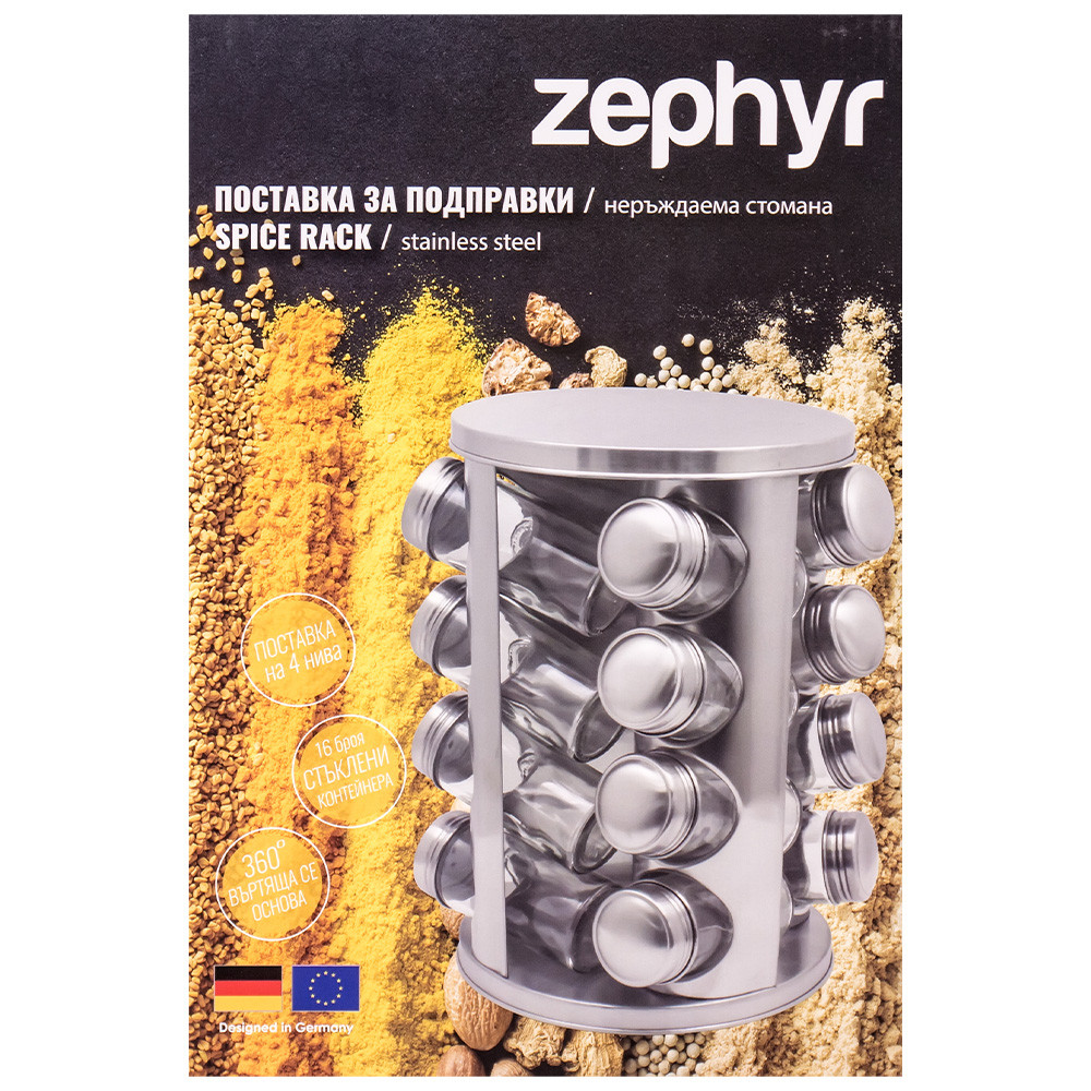 Основни характеристики: Бурканчета за подправки на стойка ZEPHYR ZP 1217 CR16, 16 бр. бурканчета, 4 нива, Въртяща се основа, Сребрист - Код G8462