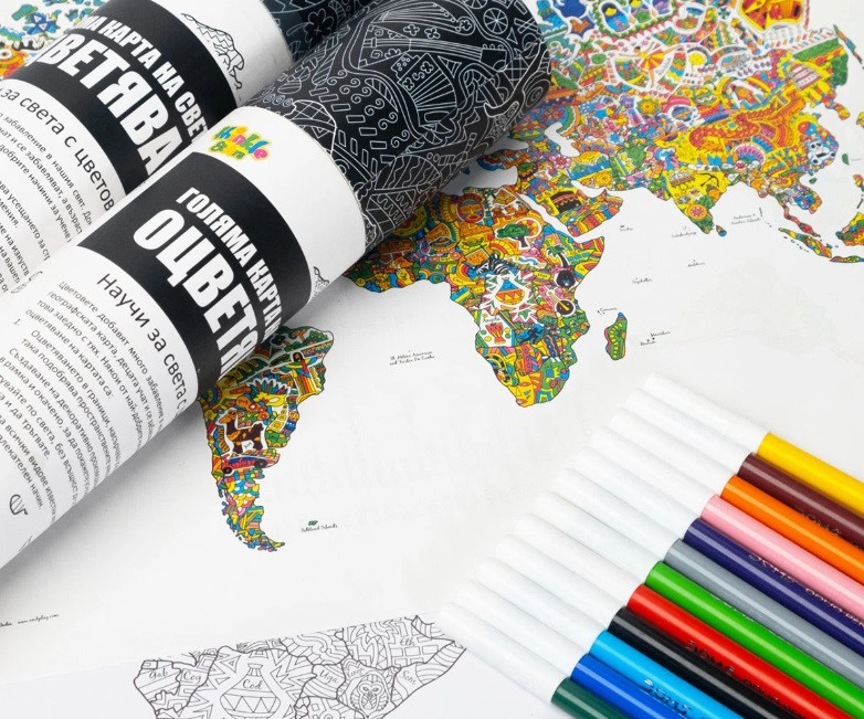 Научете за света по лесен, увлекателен и креативен начин, оцветявайки географската карта.