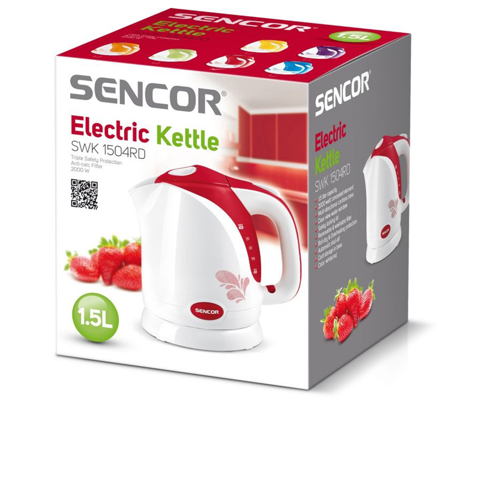 Основни характеристики: Електрическа кана SENCOR SWK 1504RD, 2000W, 1,5 л, Червен/Бял - Код G5472