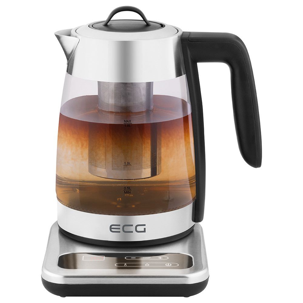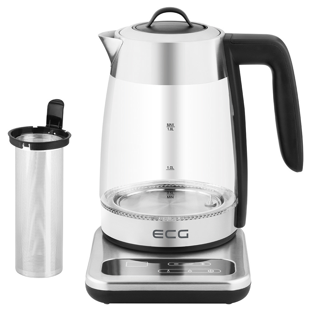Основни характеристики: Електрическа кана с цедка за чай ECG 1891 IN, 1.8л, 1850–2200 W, Сив - Код G5482