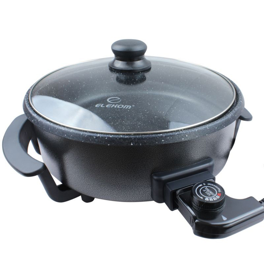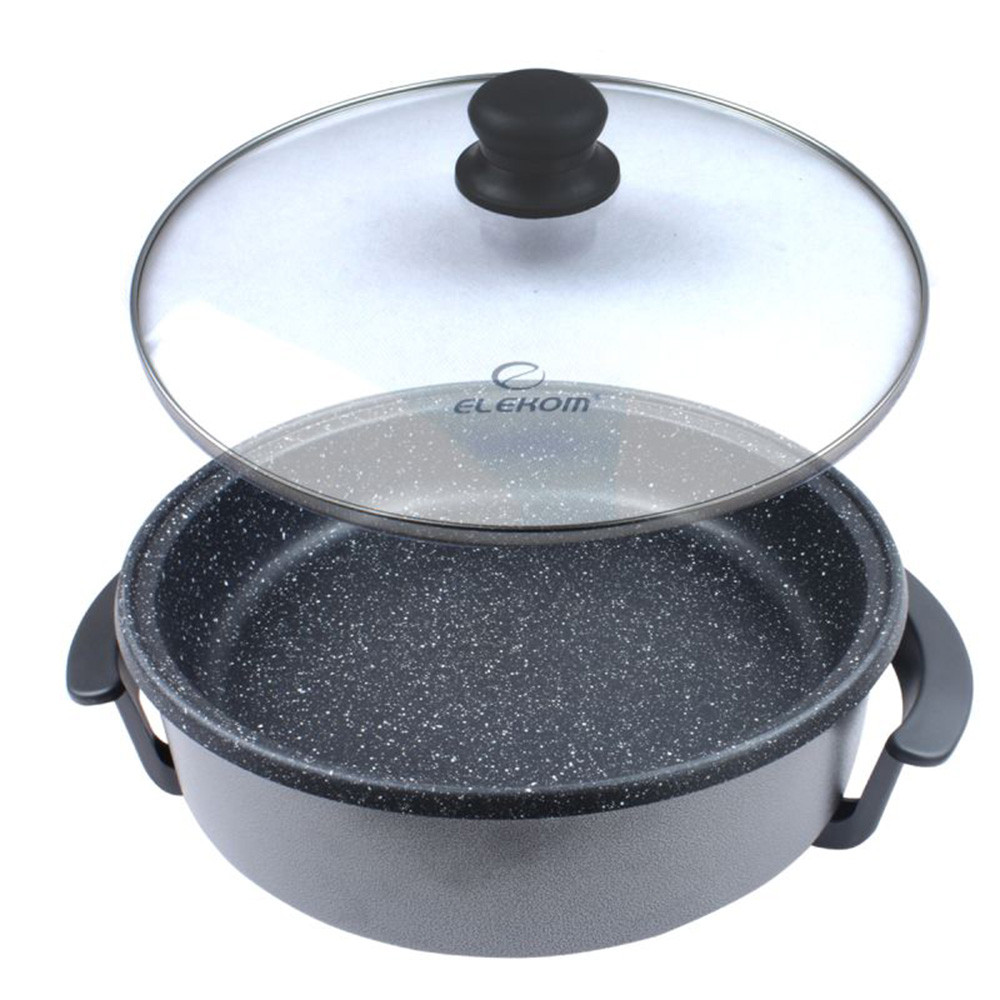 Основни характеристики: Електрически тиган/тенджера ELEKOM ЕК-2003 М, Мраморно покритие, 1500W, Сив/Черен - Код G8824