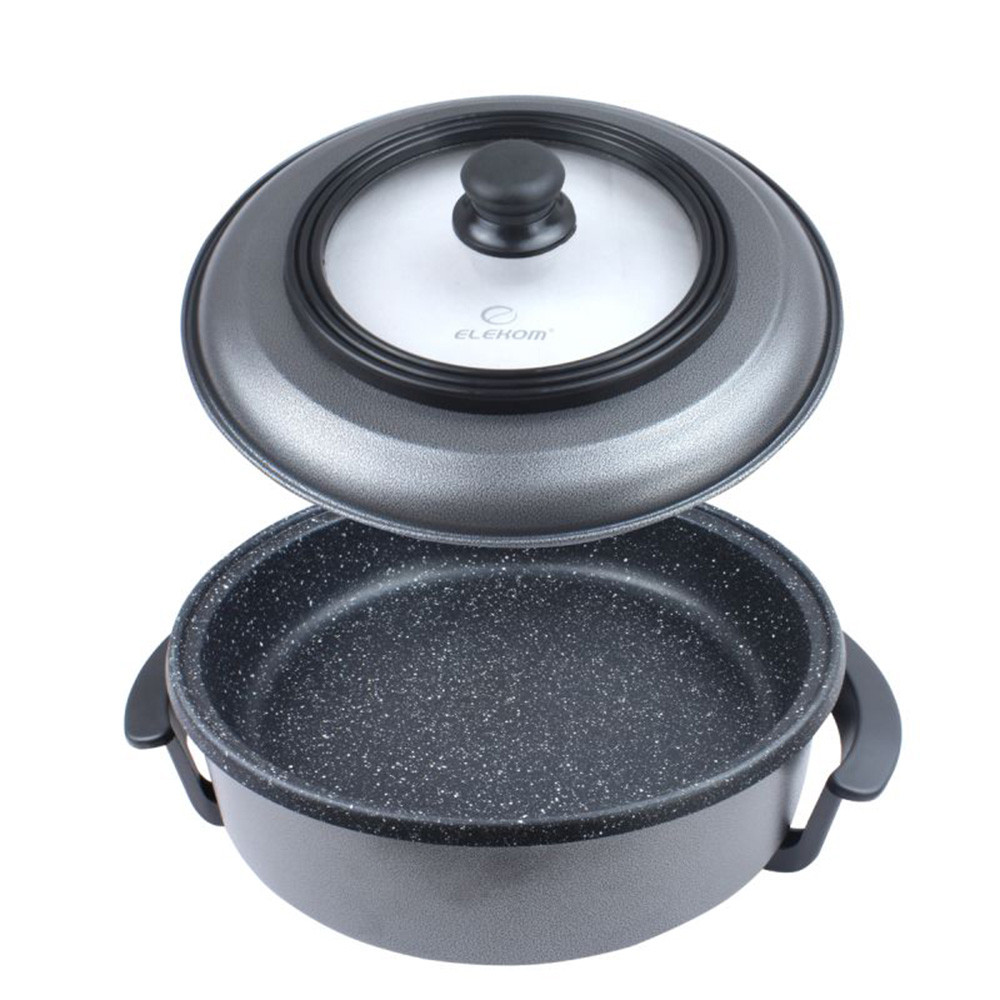 Основни характеристики: Електрически тиган/тенджера ELEKOM ЕК-2008 М, Мраморно покритие, 1500W, Сив/Черен - Код G8822