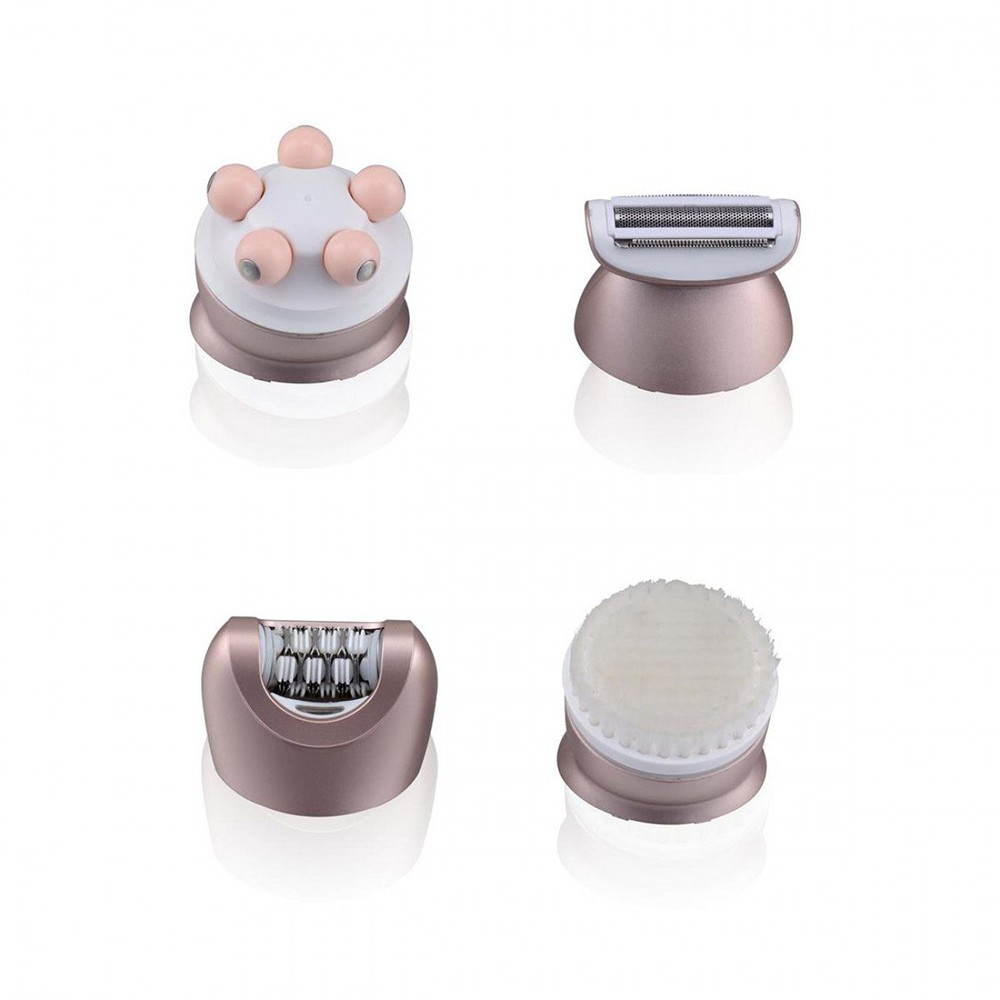 Освен различните глави, уредът може да се ползва и за лице, деликатните зони, както и за ексфолиране и опъване на кожата благодарение на включените аксесоари към него.