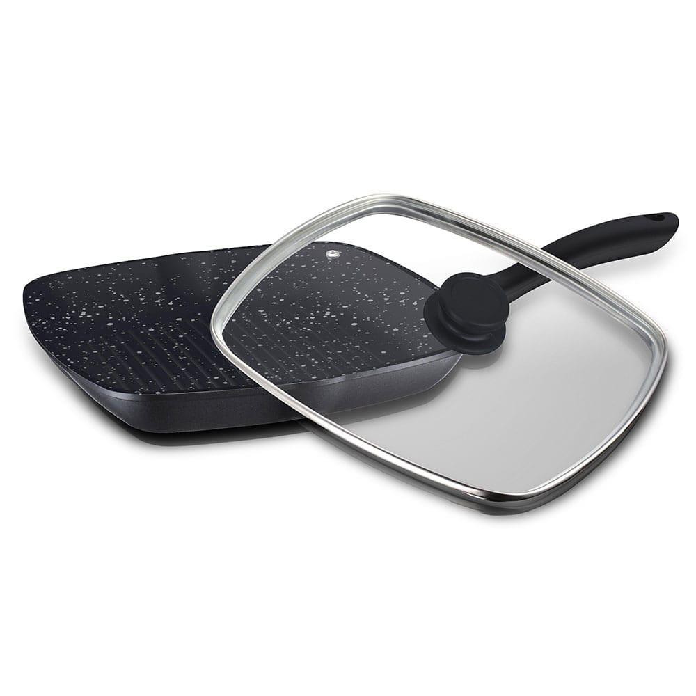 Правоъгълен грил тиган от висококачествен лят алуминий с капак.