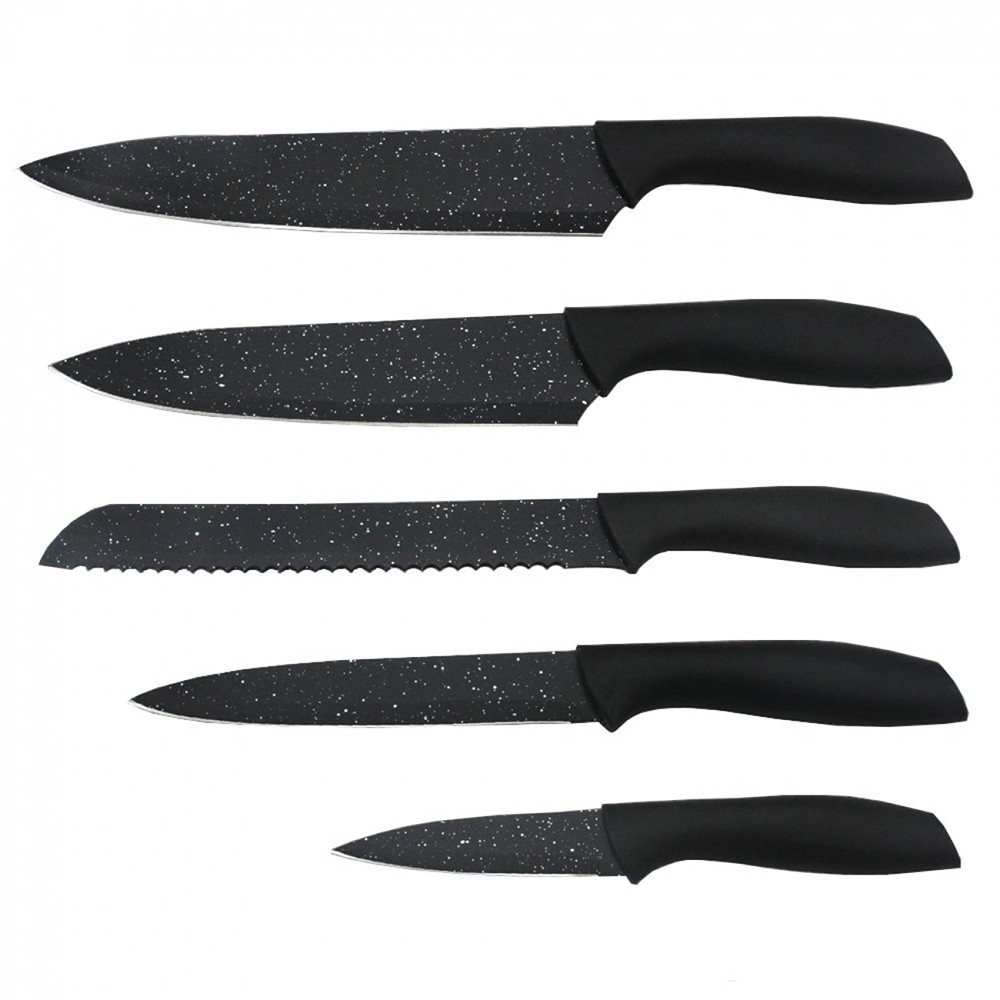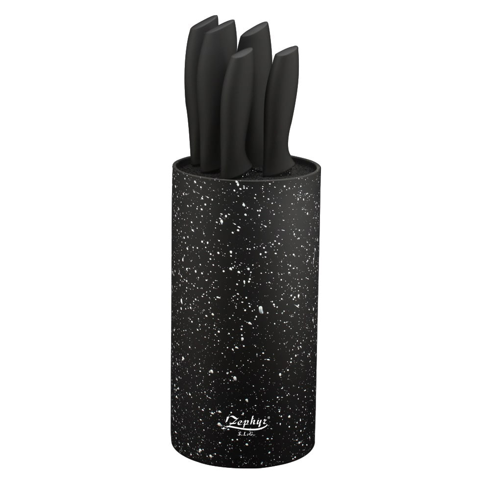 Основни характеристики: Комплект ножове ZEPHYR ZP 1633 VM6, 5 броя + поставка, Мраморно покритие, Черен - Код G8437