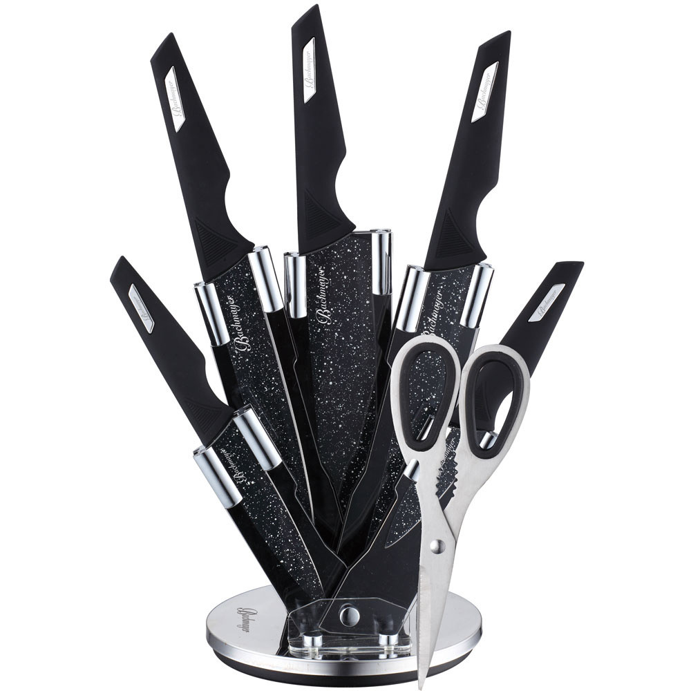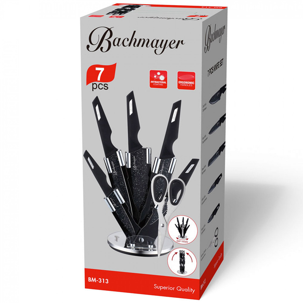 Основни характеристики: Комплект ножове с ножица Bachmayer BM 313, 7 части, Поставка, Неръждаема стомана, Черен - Код G8369