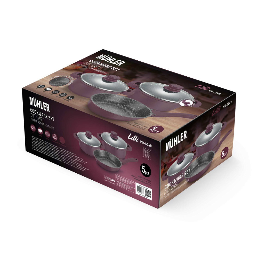 Основни характеристики: Комплект съдове за готвене Muhler Lilli MR-5049, 5 части, Лят алуминий, Люляк - Код G8605