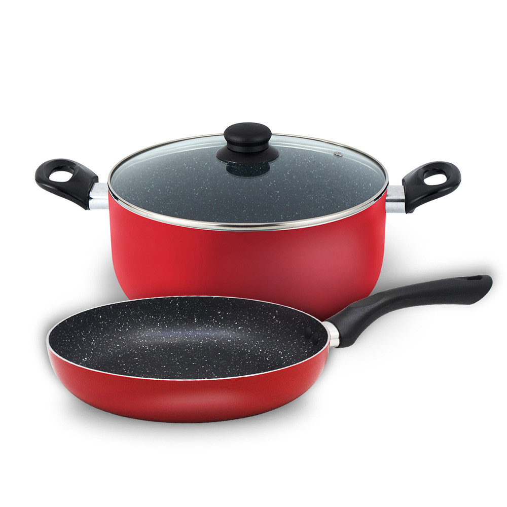 Основни характеристики: Комплект тенджера и тиган SAPIR SP 1318 P3, 3 части, 24 см, Мраморно покритие, Червен - Код G8066