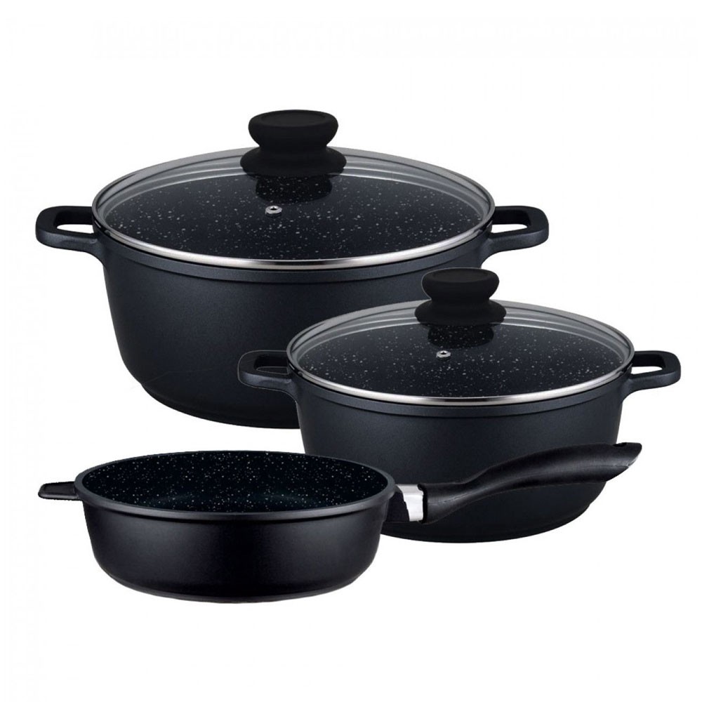 Основни характеристики: Комплект тенджери и тиган ZEPHYR ZP 4318 M5, 5 части, Мраморно покритие, Индукция, Черен - Код G8469
