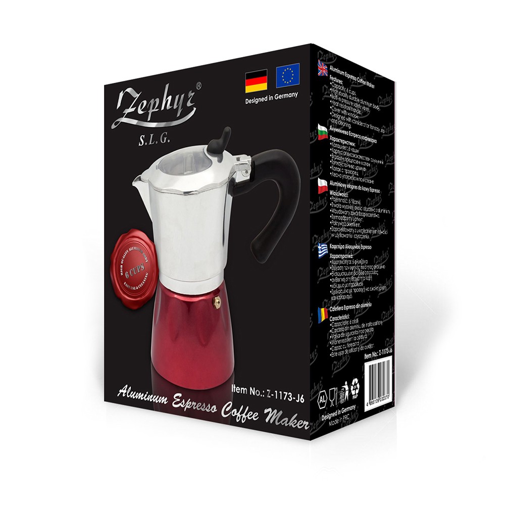 Основни характеристики: Кубинска кафеварка ZEPHYR ZP 1173 J6, 6 чаши, Червен/сребрист - Код G8663