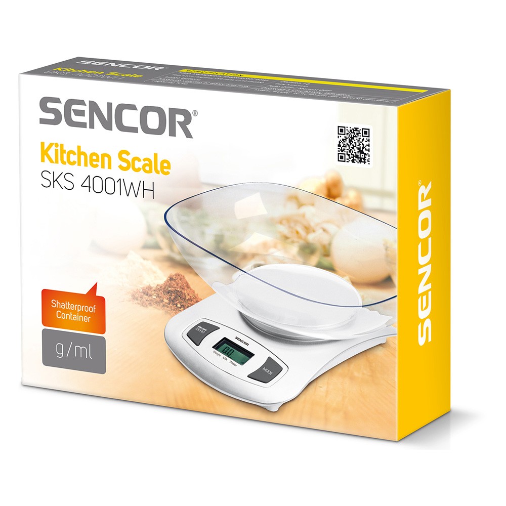 Основни характеристики: Кухненска везна SENCOR SKS 4001WH, Обем на купата 200 ml, Бял - Код G5492