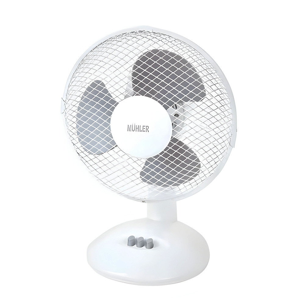 Основни характеристики: Настолен вентилатор Muhler FM-9, 20 W, 3 перки, Бял/Сив - Код G9083