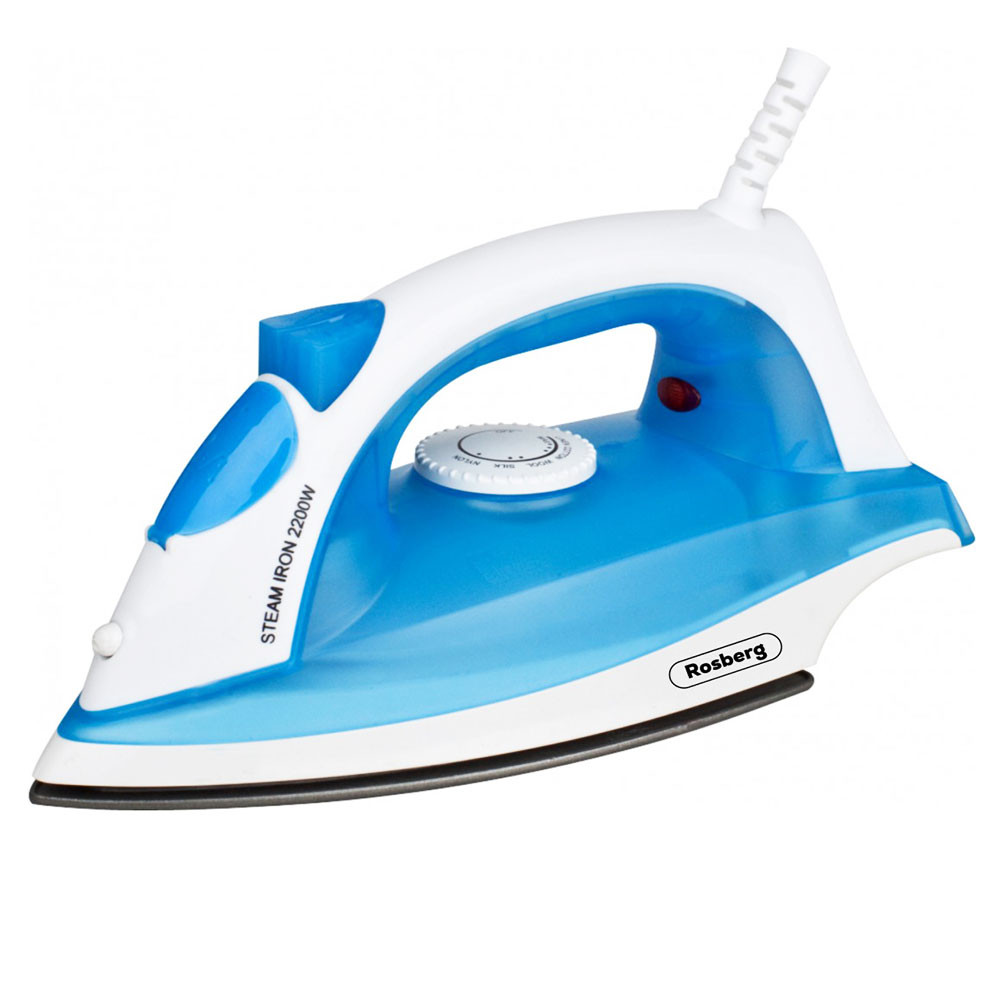 Основни характеристики: Парна ютия Rosberg R51050AT, 2200 W, 150 мл, Тефлонова плоча, Син/Бял - Код G9080