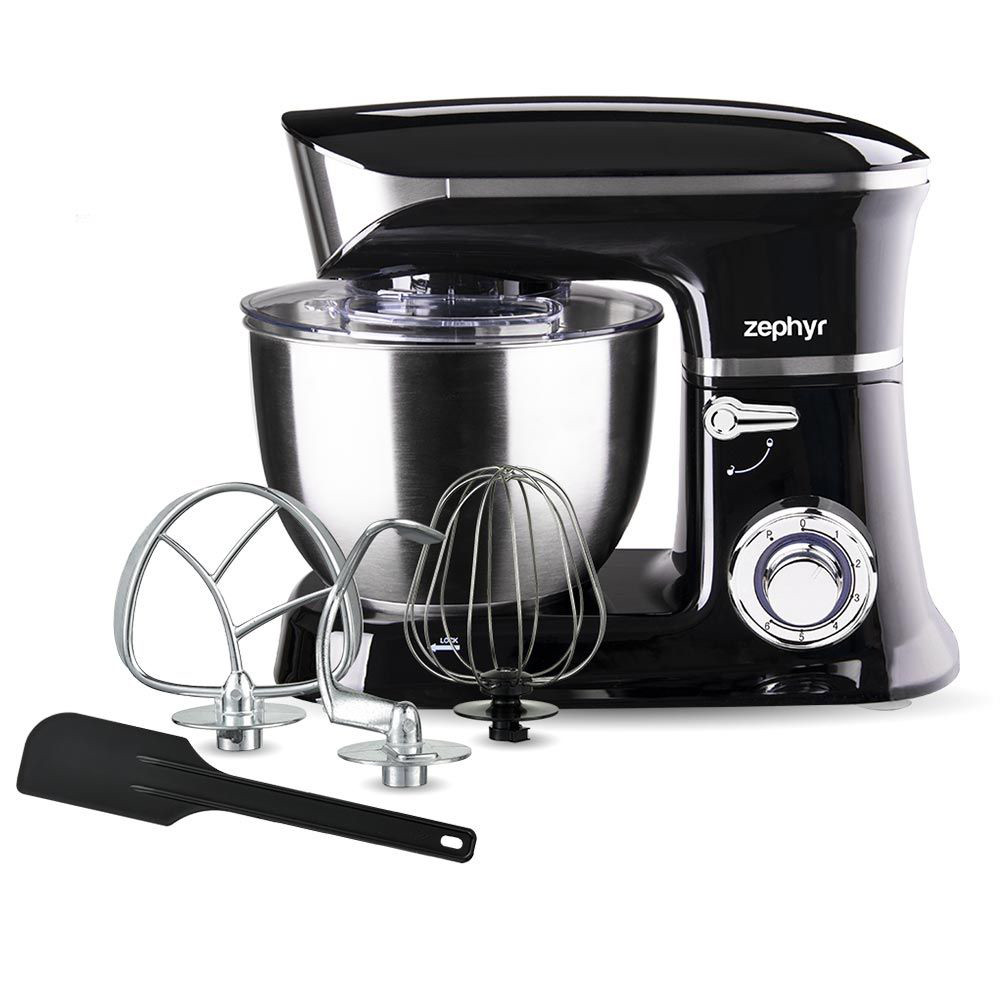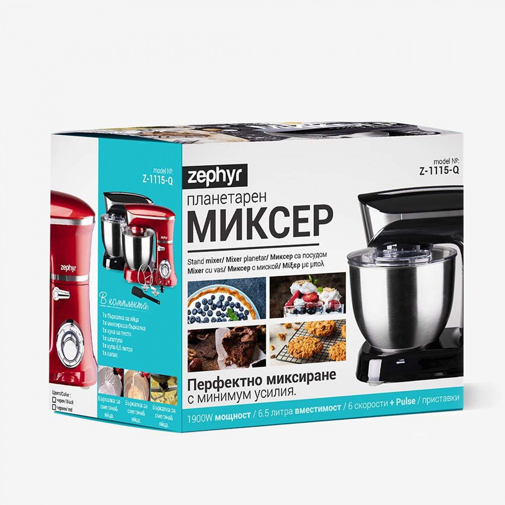 Основни характеристики: Планетарен миксер с иноксова купа ZEPHYR ZP 1115 Q, 1900W, 6.5 литра, 6 степени, Приставки, Черен - Код G8276