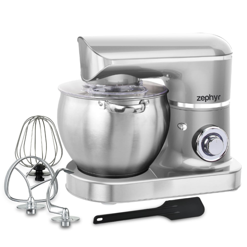 Основни характеристики: Планетарен миксер с иноксова купа ZEPHYR ZP 1115 T, 1500W, 8.5 литра, 6 степени, Приставки, Сребрист - Код G8414