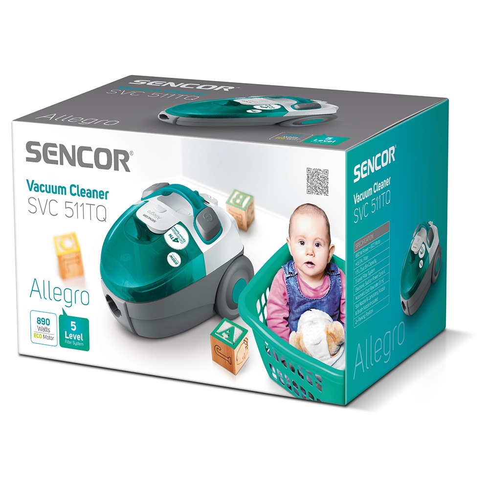 Основни характеристики: Прахосмукачка без торба SENCOR SVC 511TQ-EUE2, 890W ECO, Зелен/Сив - Код G5500