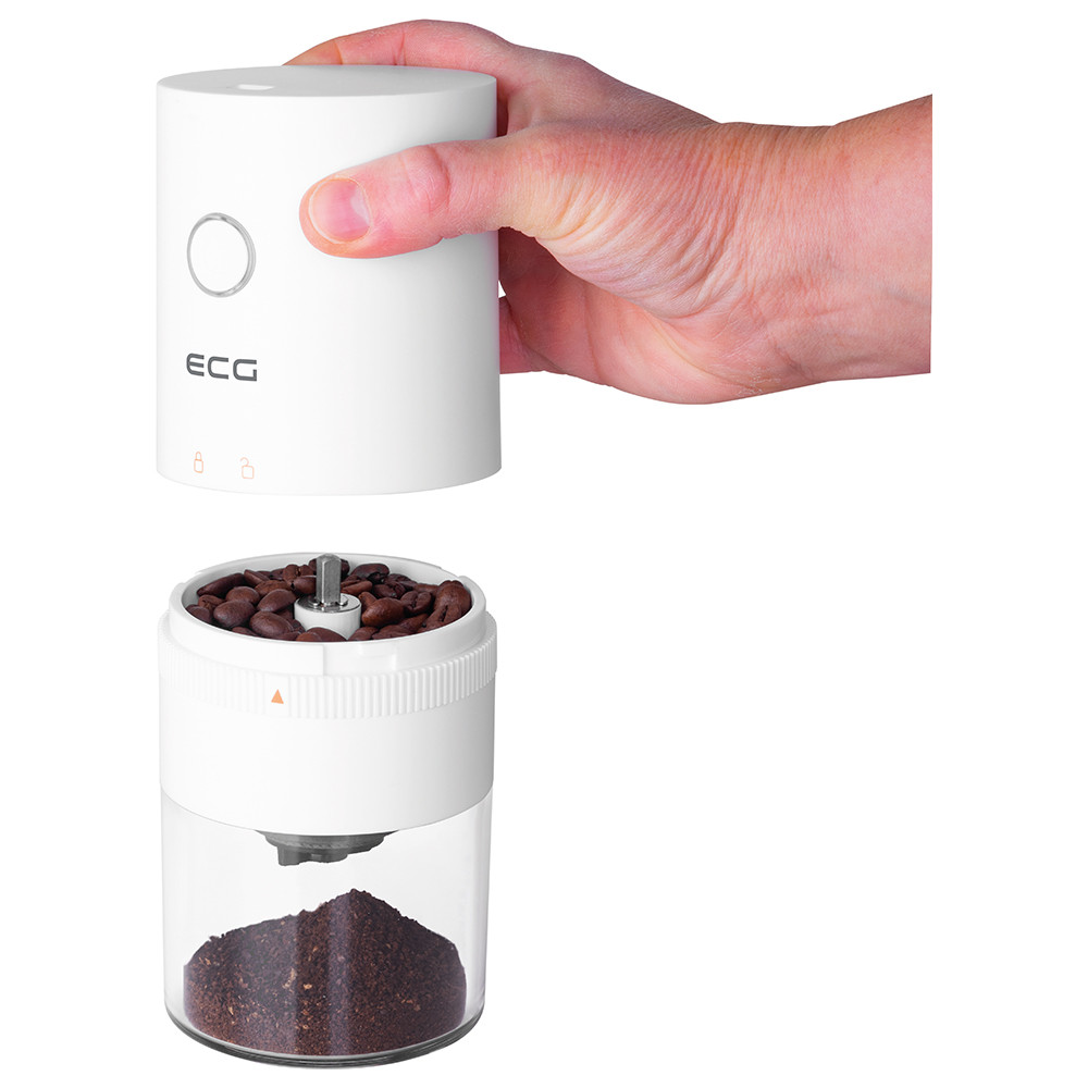 Основни характеристики: Преносима електрическа кафемелачка ECG KM 150 Minimo White, 13 W, макс. 120 мл, Бял - Код G5467