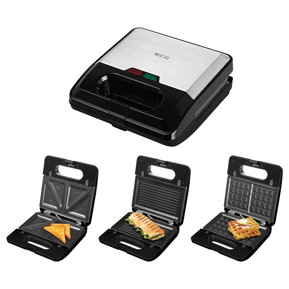 Основни характеристики: Сандвич мейкър ECG S 3173 3in1 Triangle, 750W, Черен - Код G5382