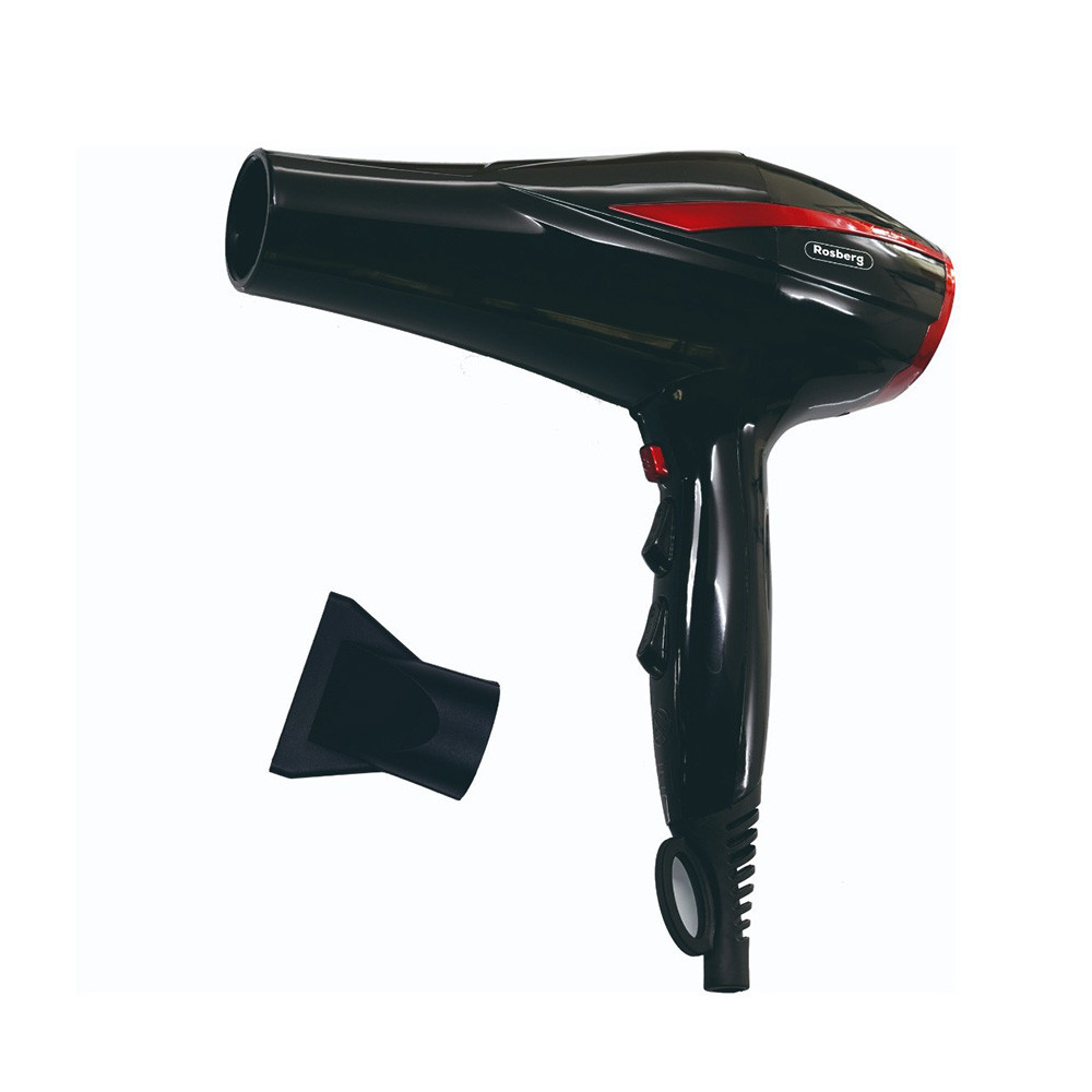 Основни характеристики: Сешоар Rosberg R51100O, 2200W, 2 скорости, 3 настройки за температурата, Черен/Червен - Код G9066
