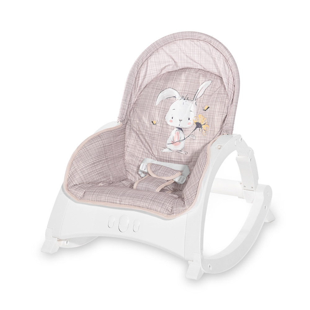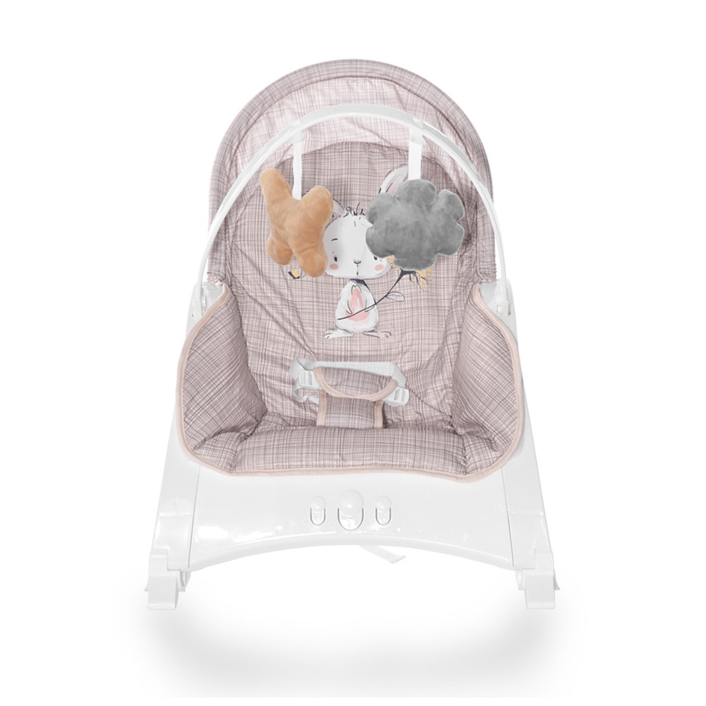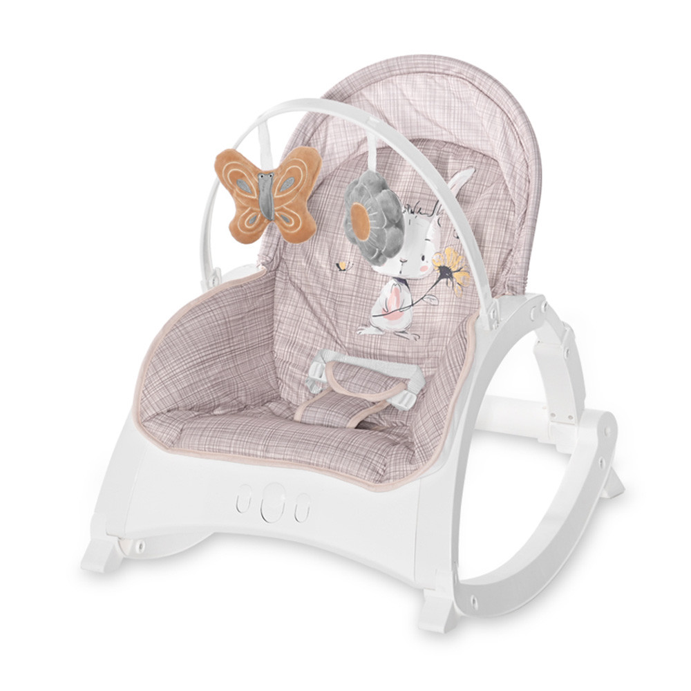Шезлонгът е удобен, забавен и много практичен. Докато бебeто расте, удобната форма и ползването като люлка, както и успокояващият вибриращ механизъм са цяло съкровище, което действа успокояващо на бебето и е основен помощник в приспиването. Приятните мелодии допълнително удпокояват бебето и му действат приспивно.