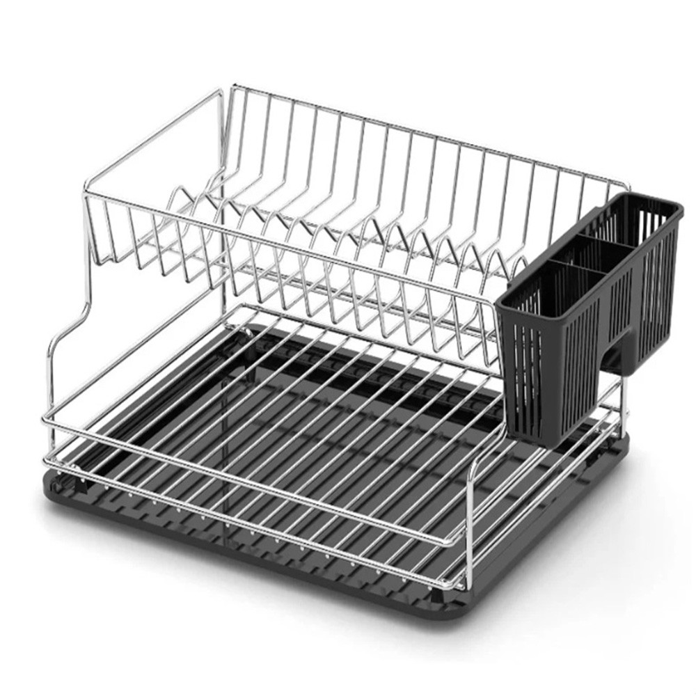 Основни характеристики: Сушилник за съдове TEKNO TEL KB-005BP , 2 нива , Хром-черно , 42 x 30 x 21 см - Код G9069