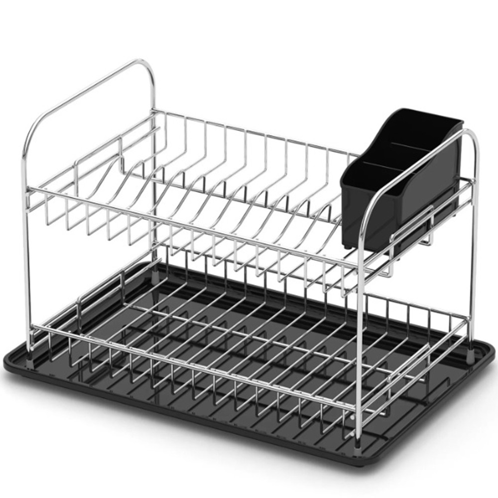 Основни характеристики: Сушилник за съдове на 2 нива TEKNO TEL KB 007BP, 48x33x32 см, Пoставка за прибори, Сив/Черен - Код G8589