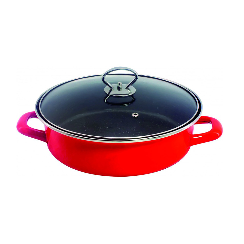 Основни характеристики: Тава с капак Rosberg R51222A26CT, 26*7см./0.8мм., Незалепващо покр., Червен - Код G90632