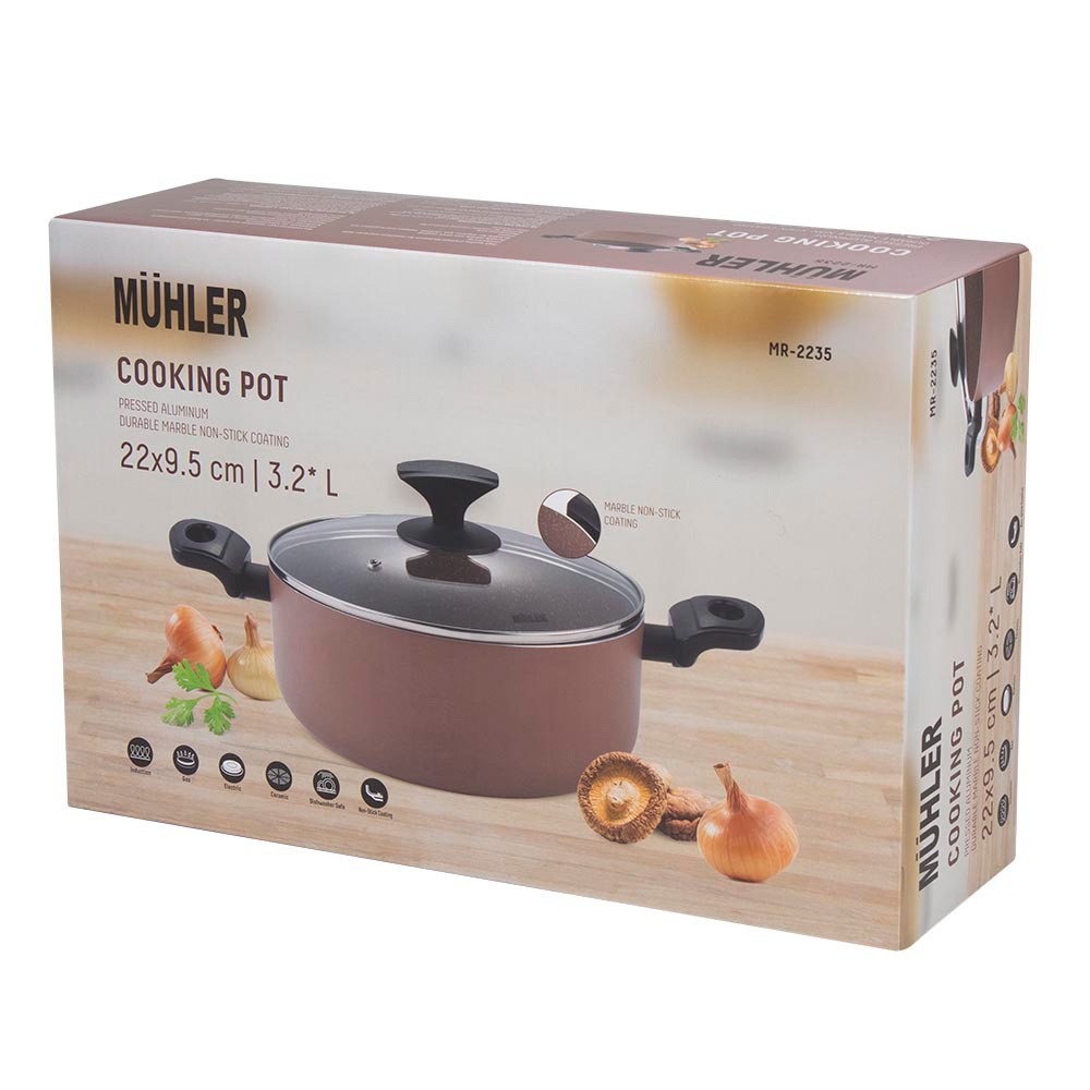 Основни характеристики: Тенджера Muhler Kikka MR-2235, 22x9.5cm, 3.2L, Кафяв - Код G8681