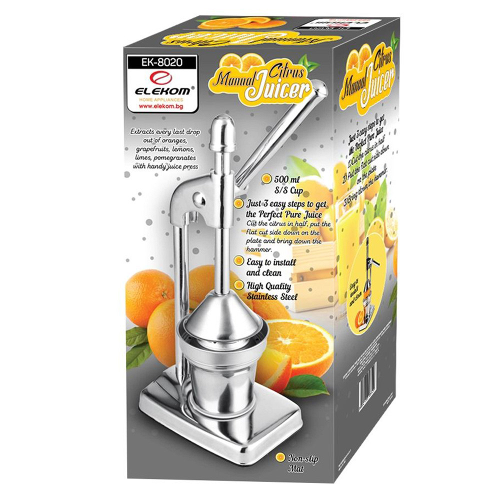 Основни характеристики: Цитрус преса ELEKOM ЕК-8020, 500 мл., Сив - Код G8632