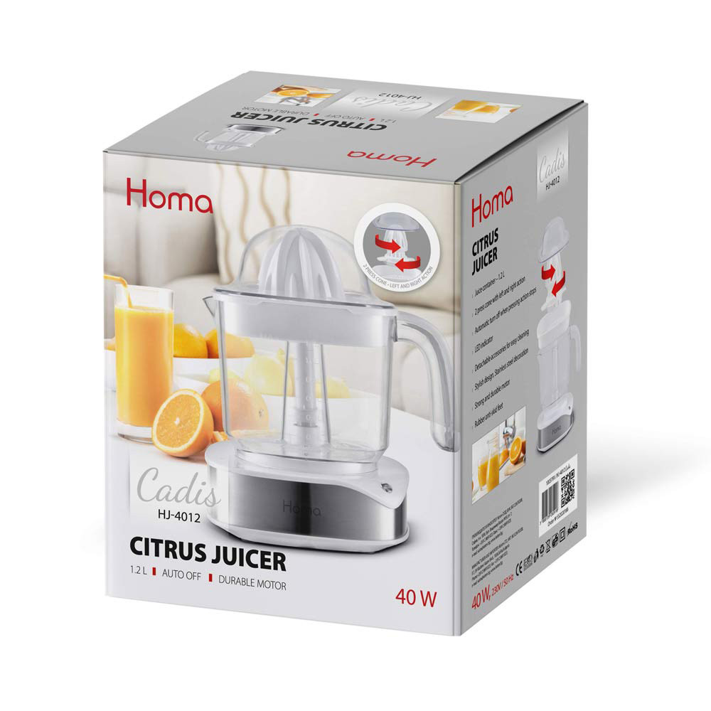 Основни характеристики: Цитрус преса HOMA HJ-4012 Cadis, 40W, 1.2L, Бял/Сив - Код G8626