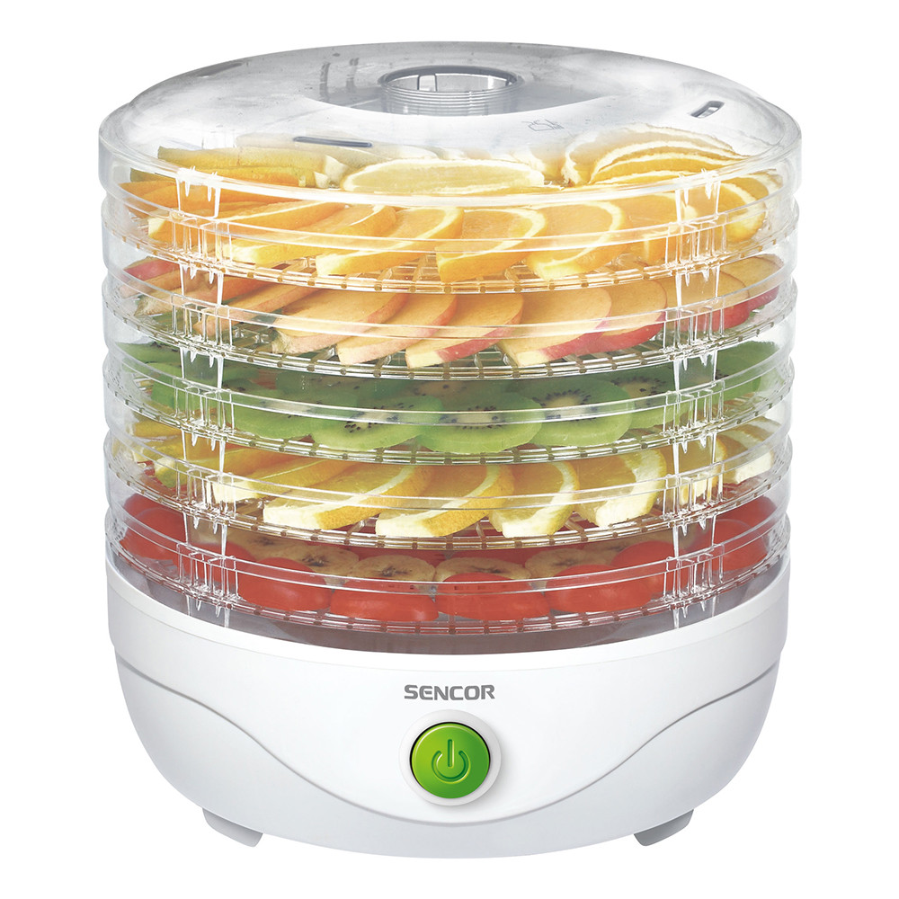 Основни характеристики: Уред за сушене на плодове Sencor SFD 750WH, 250W, 5 рафта за сушене, Бял - Код G5325