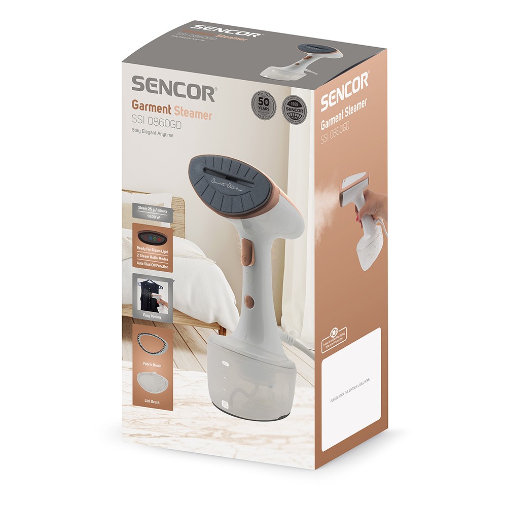 Основни характеристики: Уред за вертикално гладене с пара SENCOR SSI 0860GD, 1600W, Функция Drip-Stop, Бял/Златист - Код G5504