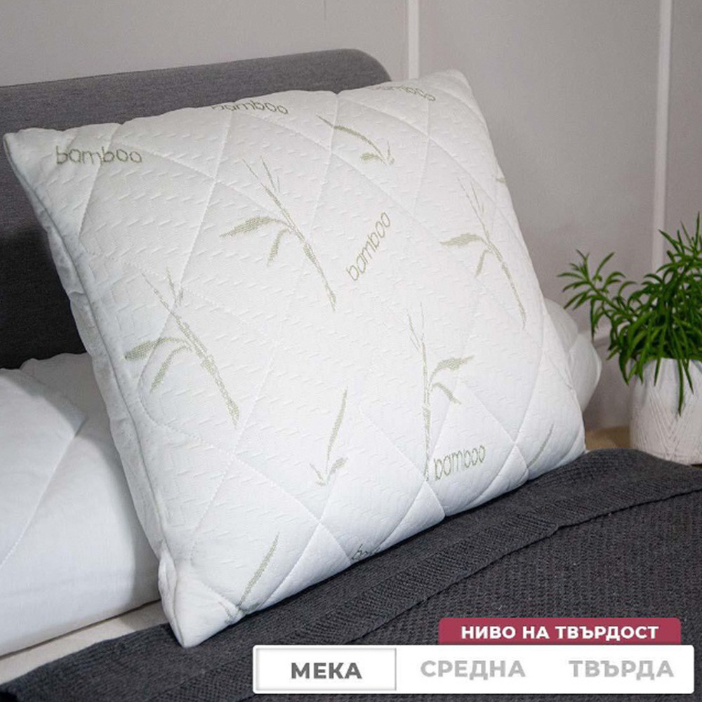 Възглавница за сън с антиалергенна бамбукова калъфка и пълнеж от мемори пух за максимален комфорт по време на сън.