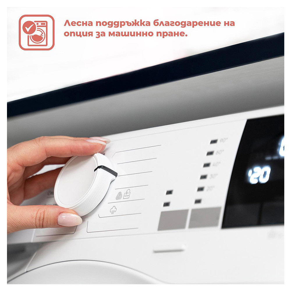 Сушенето е препоръчително да става в сушилня на програма за деликатни тъкани.