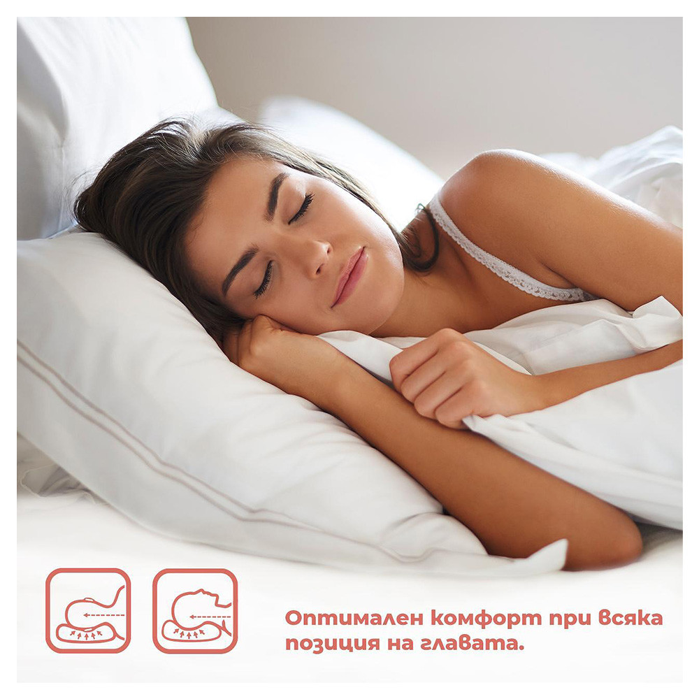 Пълнежът от силиконов пух осигурява точно тази свобода - той е лек, наглася се според извивките на тялото и осигурява удобство и комфорт, без значение от това колко често променяте позицията си по време на спане. Освен това силиконовият пух е антиалергичен и не задържа прах.
