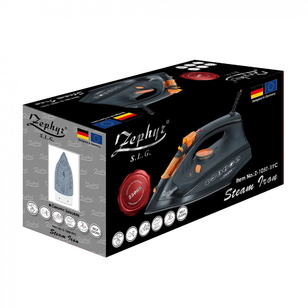 Основни характеристики: Парна ютия ZEPHYR ZP 1050 BYC, 2500W, 260 мл, Керамична плоча, Вертикално гладене, Самопочистване, Черен - Код G8039