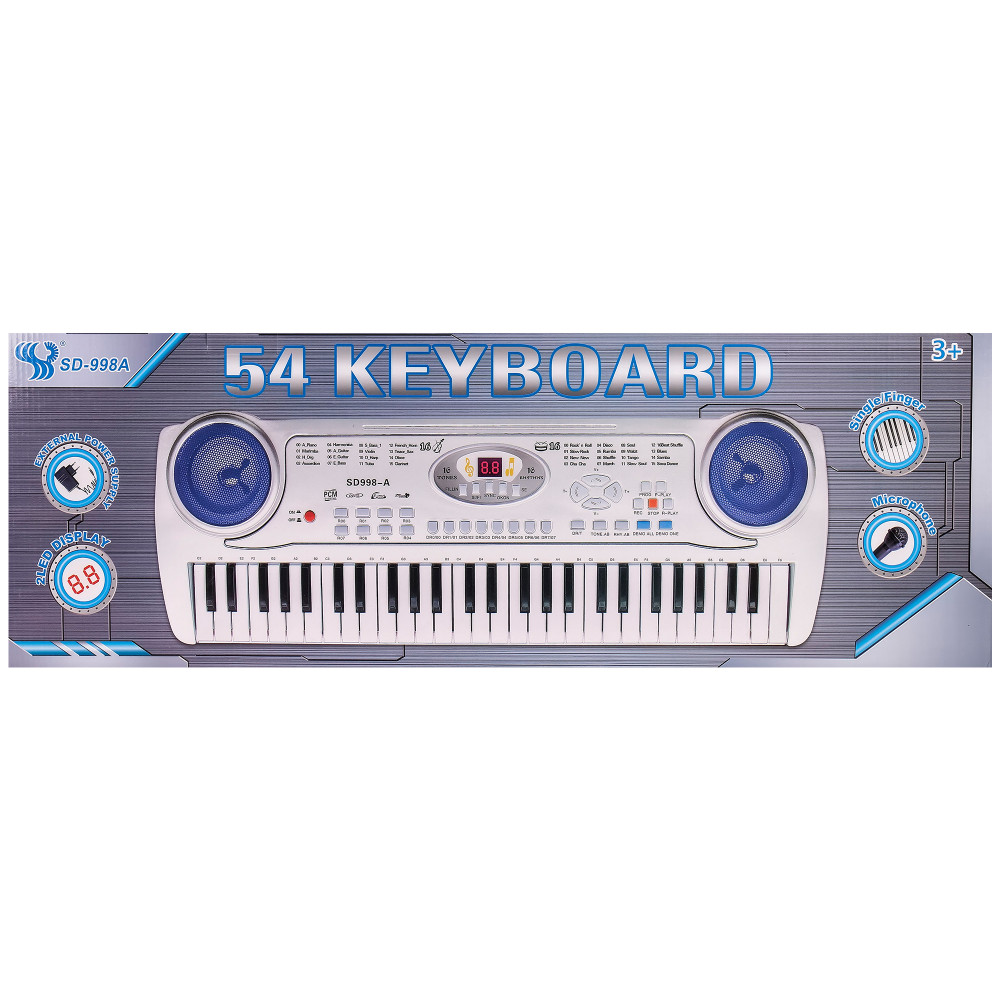 Функции: 61 клавиша, 16 тона, 16 ритъма, 7 вида перкусии, 10 демо мелодийки, запис и възпроизвеждане, свирене по зададена от системата мелодия, вмъкване на ритъм, контрол на темпото, контрол на силата на звука, функция "караоке", бутон "STOP" за спиране на текущата функция, бутон "ON/OFF" за включване и изключване, електронен дисплей, автоматично изключване.