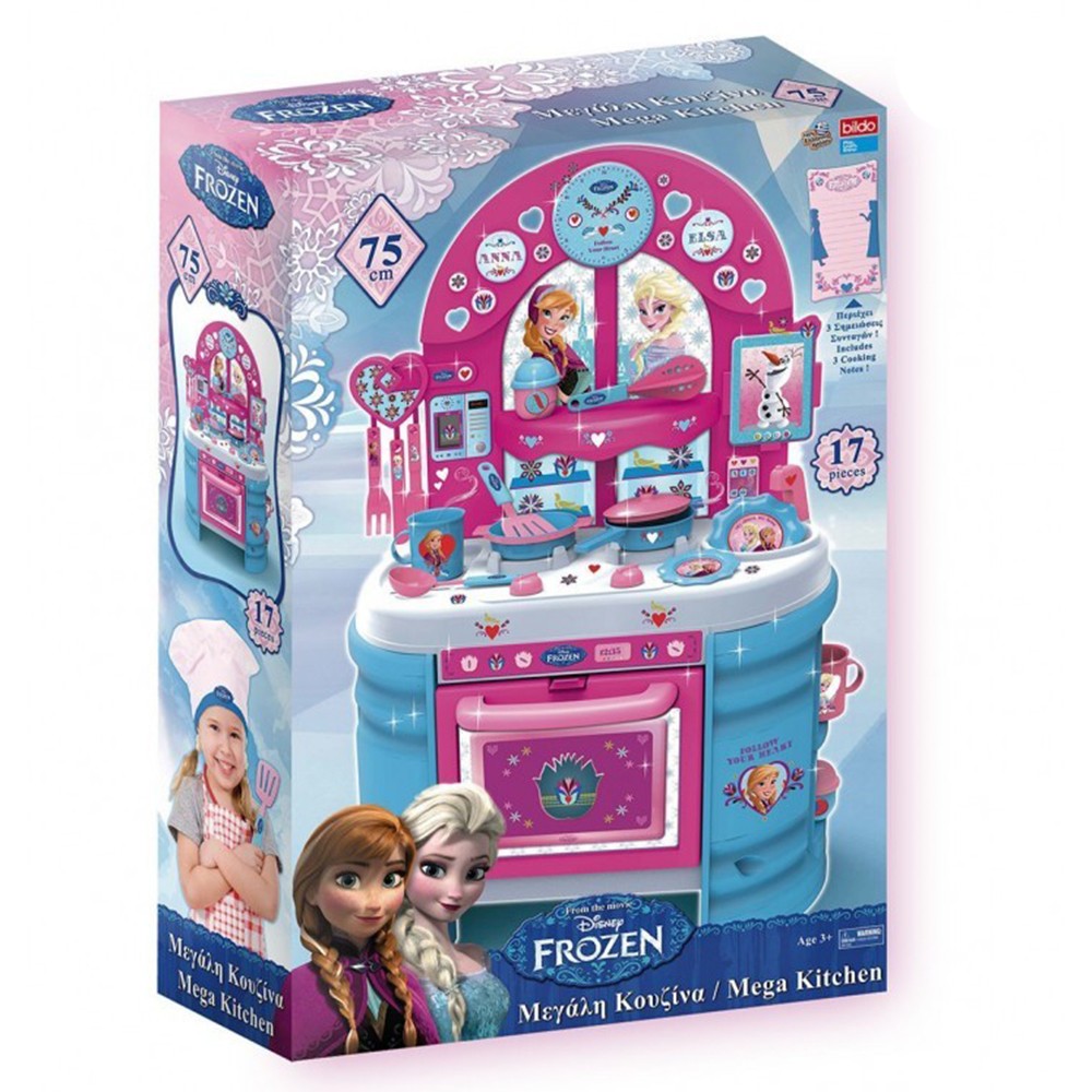 Допълнителни характеристики: Приготвяйте вкусни вечери за цялото семейство с кухненския комплект за мега игра Disney Frozen.