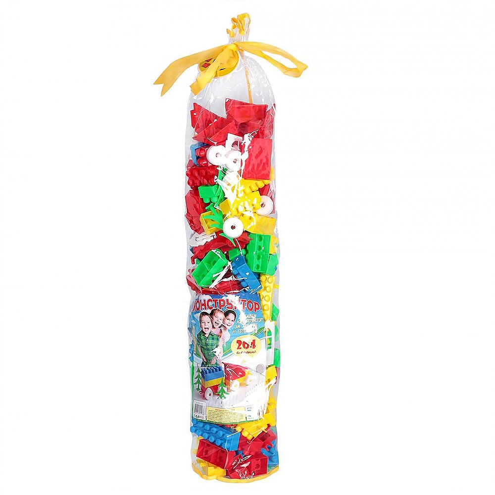 Комплектът съдържа 204 елемента на конструктор и чувалче.