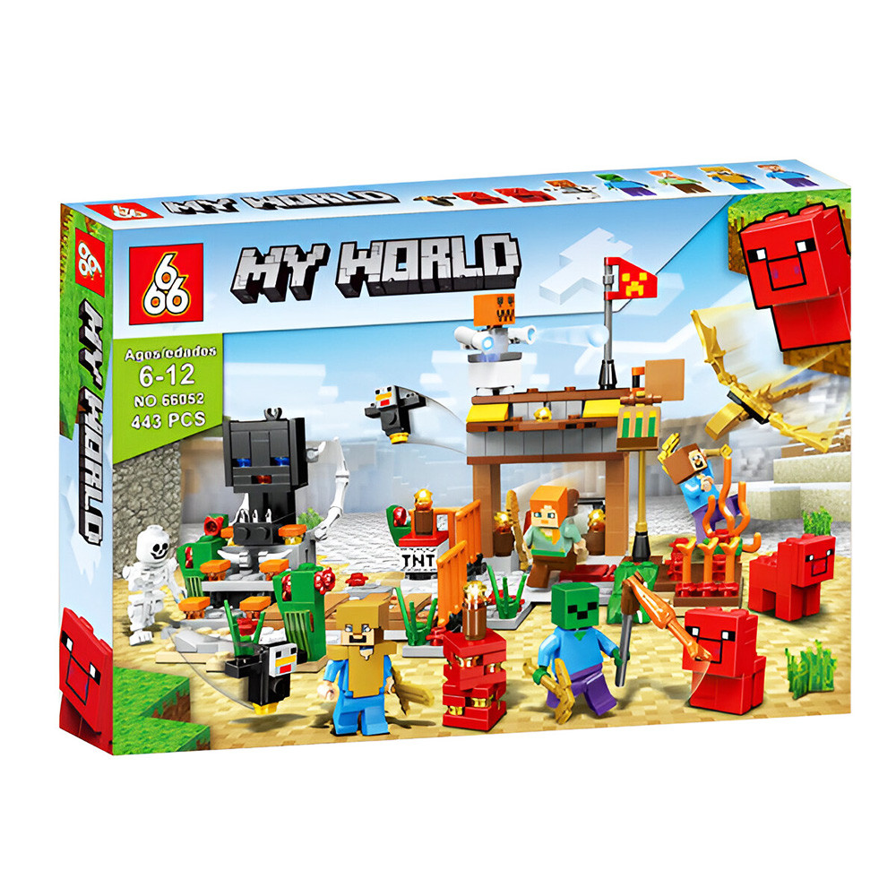 Комплектът съдържа 443 елемента на конструктор за сглобяване на извънземна сцена