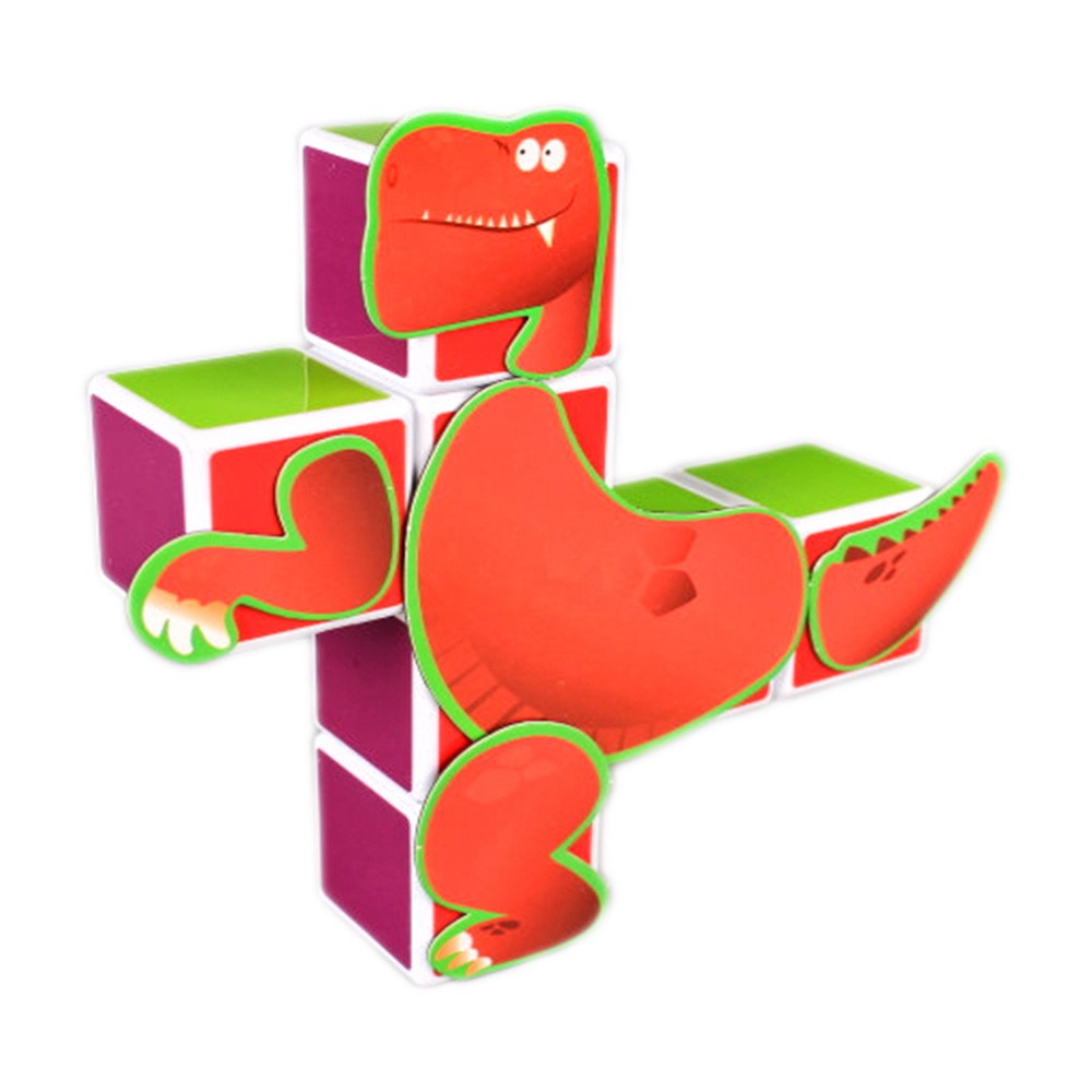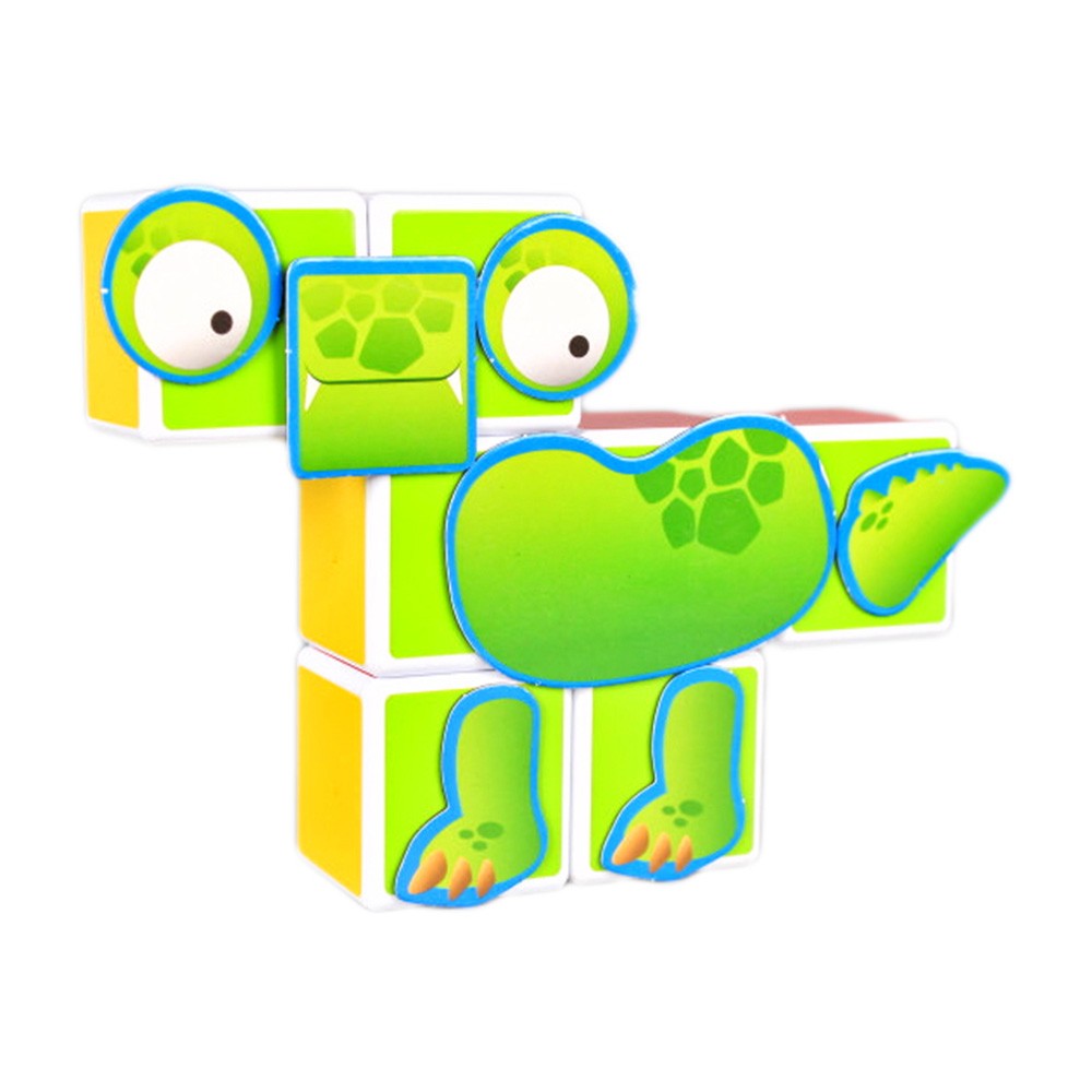 Комплектът съдържа 7 пластмасови магнитни кубчета и магнитни картинки за направата на различни динозаври.
