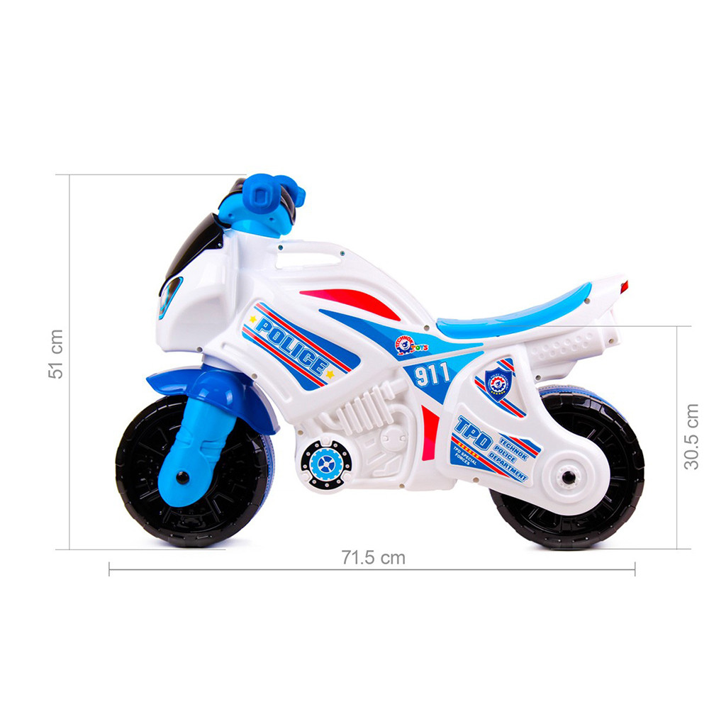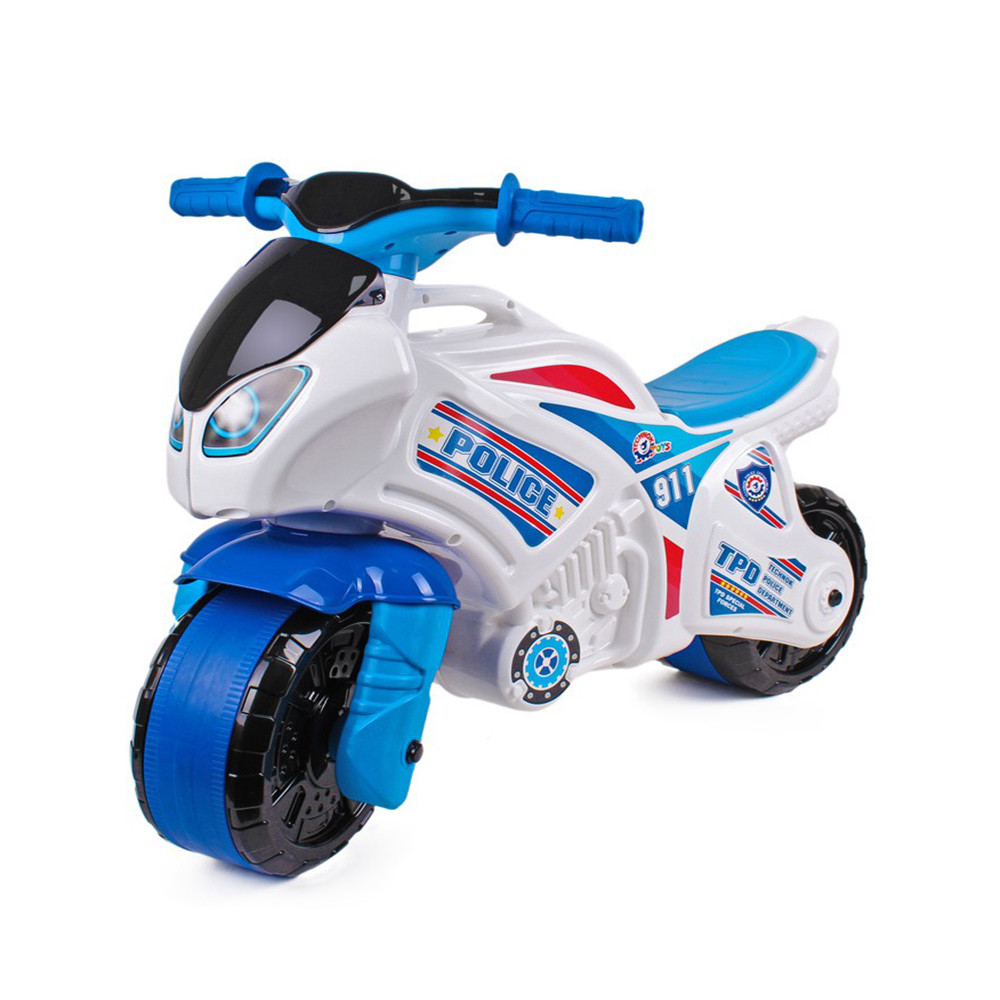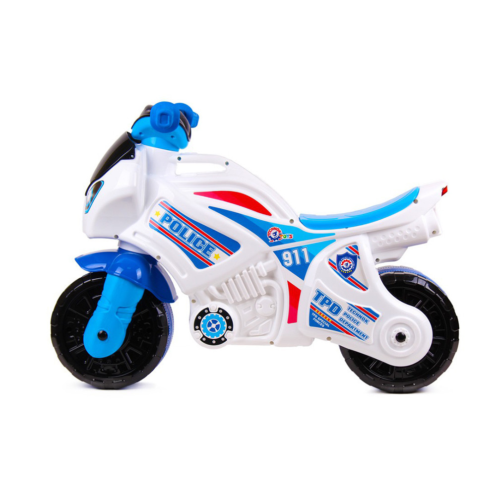 Белият мотор с ярки „полицейски“ стикери ще се превърне в любимата играчка на вашите деца.
