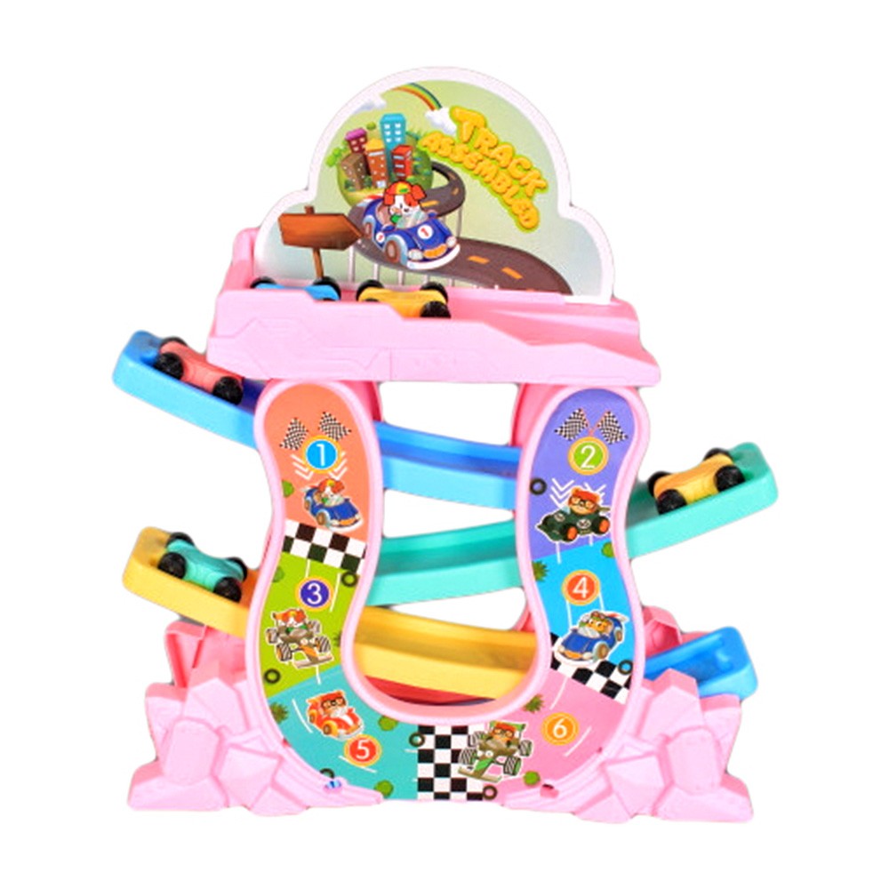 Комплектът съдържа елементи за сглобяване на паркинг преобразуващ се в пътна инфраструктора и осем коли.