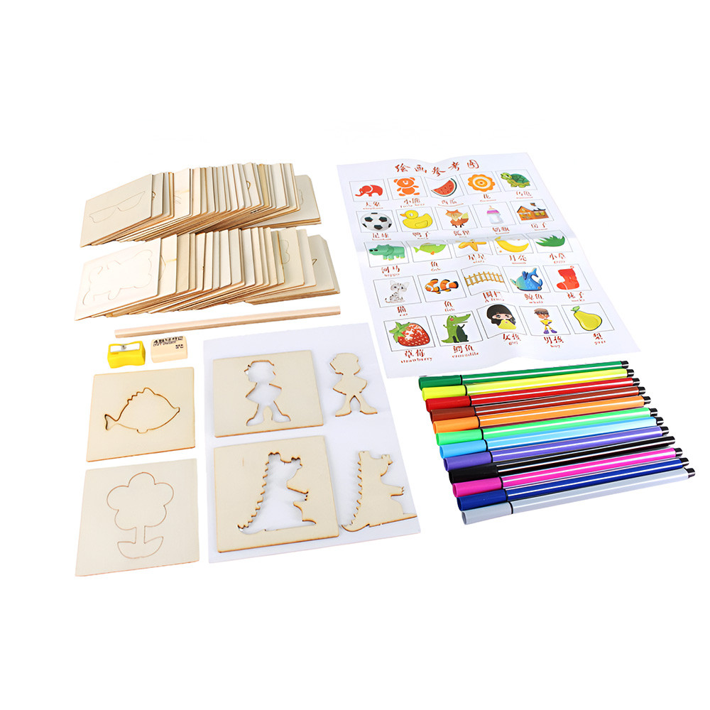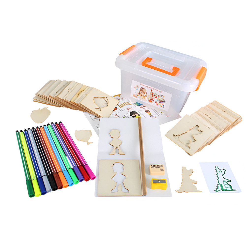 Основни характеристики: Детски рисувателен комплект с дървени шаблони EmonaMall - Код W5444